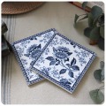 イギリスから直輸入した古いアンティークタイル2枚セット。花柄の美しいデザインタイルです。 経年による縁にカケ・スレ・キズ・貫入がみられますが雰囲気を損なってはおりません。 ※コンディション詳細は画像にてご確認下さい。フレームに入れて飾ったり、ポットスタンドにも最適です! やはり古い物は素敵ですね