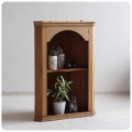 イギリスから届いたパイン材のコーナーシェルフ/ウォールシェルフ。弱まった箇所無くいい状態です。 節の抜け落ち・経年劣化がございますがよい味となっております。壁掛け金具付きです。 古い木肌が美しいアンティークコーナーシェルフはいかがですか?店舗什器にもどうぞ。