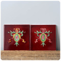 イギリス アンティークタイル2枚セット 陶器 インテリア雑貨 花柄「鍋敷き/コースター」P-904