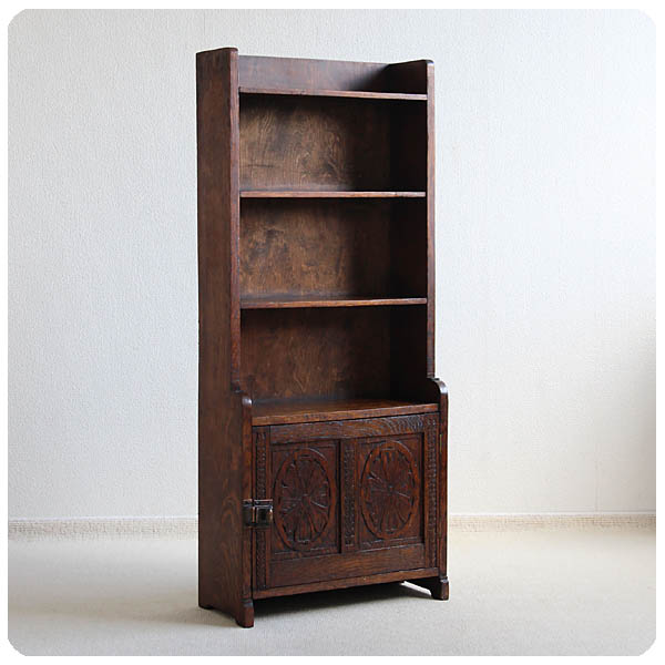 イギリス アンティーク ブックシェルフ 本棚 彫刻装飾 Q-116